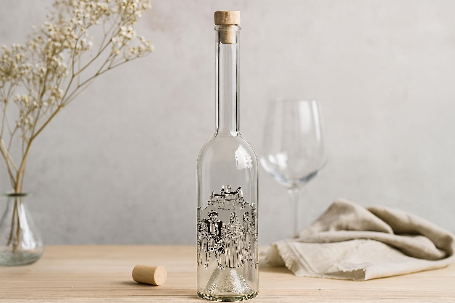 Potíria kai fiales Γυάλινο μπουκάλι 'Opera' 500 ml, σχέδιο: κυνηγός, στόμιο: φελλός