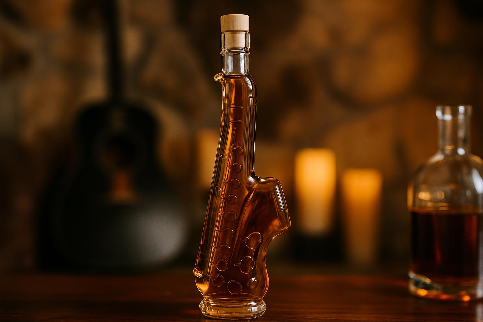 Το μπουκάλι με σχέδιο «Σαξόφωνο» συνδυάζει καλλιτεχνικό σχεδιασμό με γυαλί υψηλής ποιότητας και φέρνει το μουσικό πάθος σε μια κομψή μορφή. Η κυματιστή σιλουέτα του και η λεπτομερής διακόσμηση το καθιστούν ένα εξαιρετικό σημείο αναφοράς. Είτε ως δώρο για λάτρεις της τζαζ είτε ως διακοσμητικό μπουκάλι για εκλεκτά αποστάγματα – προσδίδει ιδιαίτερη έμφαση και χαρίζει σε κάθε περιεχόμενο μια μοναδική νότα.