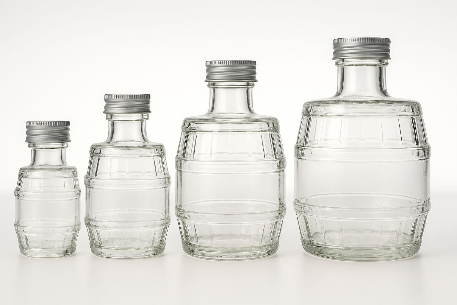 Η σειρά «Βαρέλι» συνδυάζει την τεχνική λεπτομέρεια με την λειτουργική τελειότητα. Εμπνευσμένο από κλασικά ξύλινα βαρέλια, αυτό το μπουκάλι εντυπωσιάζει με μια επιφανειακή διακόσμηση γεμάτη λεπτομέρειες, που προσδίδει στο περιεχόμενό του μια αυθεντική και υψηλής ποιότητας παρουσίαση. Κατασκευασμένο στην Ιταλία, ξεχωρίζει για την κορυφαία ποιότητα γυαλιού και την επιλογή μεταξύ διαφόρων στομίων – φελλού ή βιδωτού καπακιού (PP 18, PP 24, PP 28) – προσαρμοσμένα σε ατομικές ανάγκες. Με χωρητικότητα από 50 έως 500 ml, η σειρά «Βαρέλι» προσφέρει έναν κομψό τρόπο να αποθηκεύετε εκλεκτά ποτά με ασφάλεια και αισθητική αρτιότητα.
