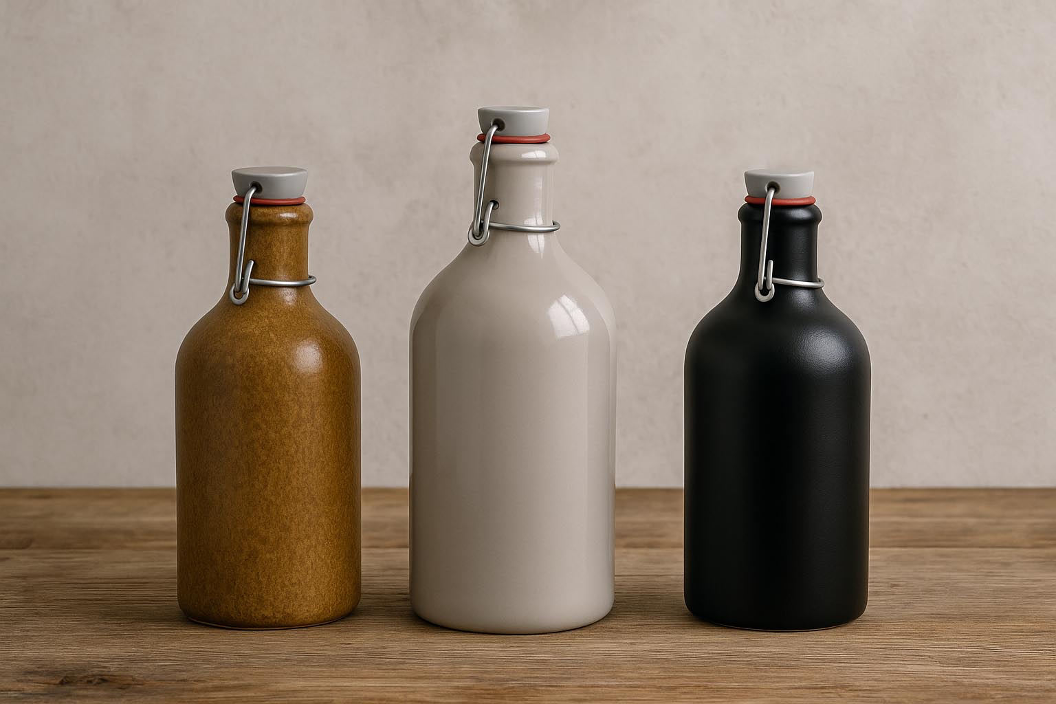 Κανάτα από πέτρινο σκεύος με κλείσιμο με μεταλλικό κλιπ