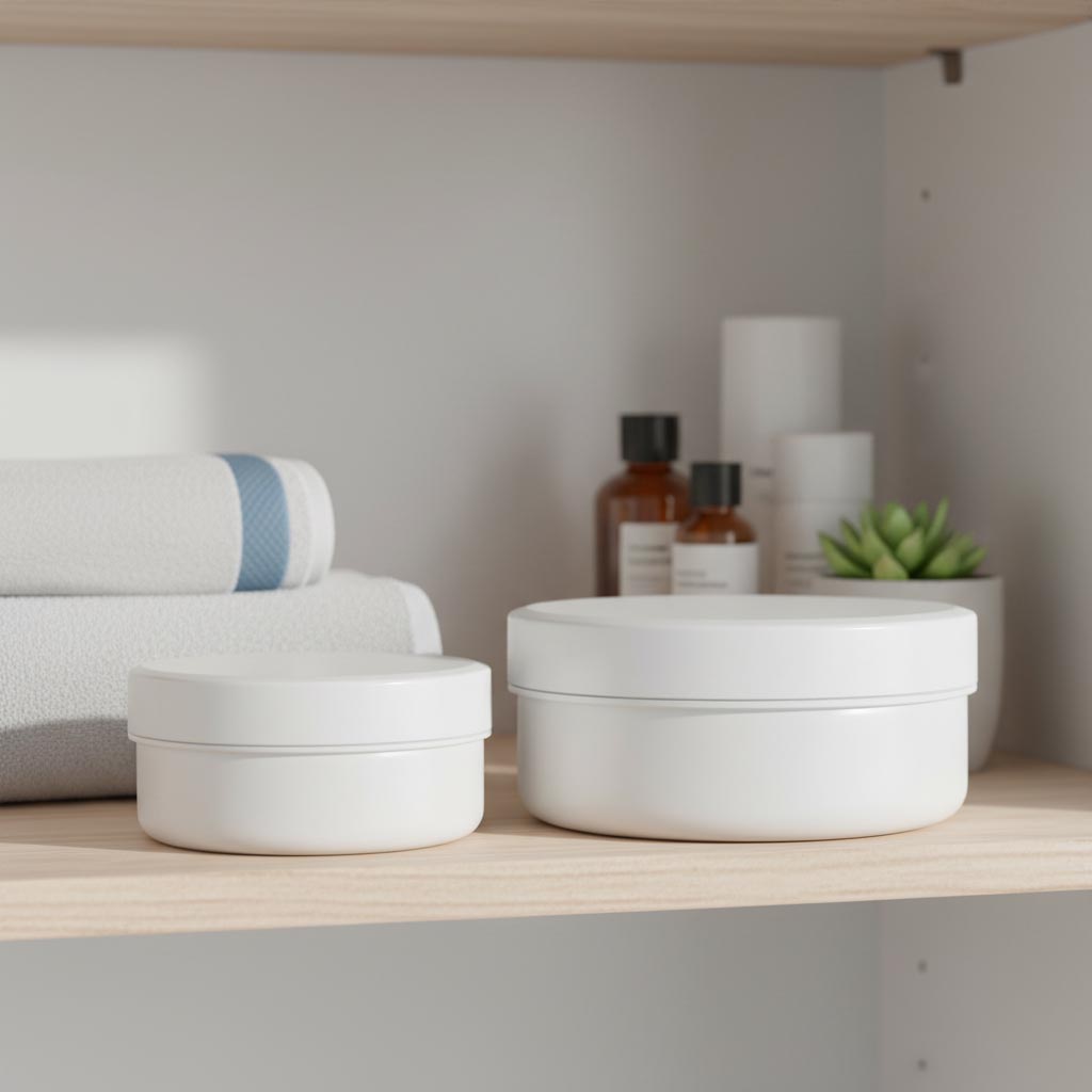 Η σειρά προϊόντων "White Line" από τη Flaschenland περιλαμβάνει υψηλής ποιότητας πλαστικά δοχεία 12 ml από ανθεκτικό πολυπροπυλένιο (PP) σε κομψό λευκό χρώμα, εξοπλισμένα με πρακτικό βιδωτό καπάκι. Αυτά τα δοχεία έχουν σχεδιαστεί ειδικά για την ασφαλή και υγιεινή αποθήκευση κρεμών και καλλυντικών προϊόντων. Τα πλαστικά δοχεία της "White Line" ξεχωρίζουν για τις ανθεκτικές τους ιδιότητες σε χαμηλές θερμοκρασίες, την αντοχή στην υπεριώδη ακτινοβολία και τη δυνατότητα πλύσης στο πλυντήριο πιάτων, προσφέροντας έτσι πολυχρηστικότητα και μακροχρόνια χρήση. Το υλικό πολυπροπυλένιο εξασφαλίζει σταθερότητα και προστασία από περιβαλλοντικούς παράγοντες, ενώ το συμπαγές μέγεθος των 12 ml είναι ιδανικό για μικρές ποσότητες ή δείγματα. Το στρογγυλό σχήμα και το λευκό χρώμα προσδίδουν στα δοχεία επαγγελματική και ελκυστική εμφάνιση.