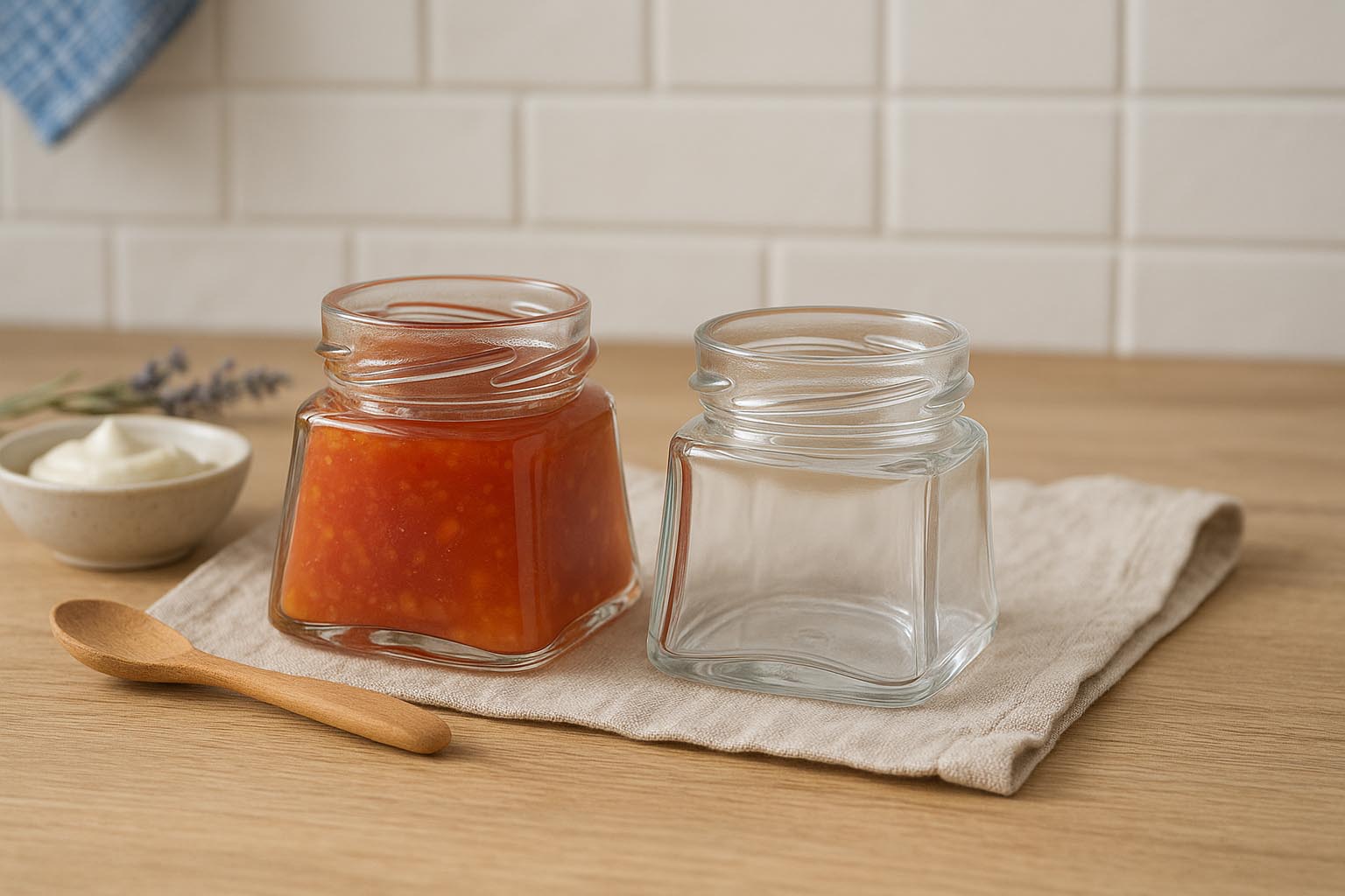 Το τετράγωνο γυαλί Luxor ξεχωρίζει με τον μοναδικό του σχεδιασμό: με μια ορθογώνια βάση που μετατρέπεται σε στρογγυλό σχήμα προς τα πάνω, δημιουργεί ένα ιδιαίτερο οπτικό εφέ. Αυτή η εξαιρετική σχεδίαση γυαλιού το καθιστά την τέλεια επιλογή για υψηλής ποιότητας κρέμες και λοσιόν, αλλά και για εκλεκτά προϊόντα όπως μουστάρδα ή μαρμελάδες. Οι βαθιές σφραγίδες Twist-Off DTO 58 και DTO 63 εξασφαλίζουν ασφαλή σφράγιση – τα αντίστοιχα καπάκια είναι διαθέσιμα στη συλλογή μας. Το Luxor συνδυάζει σύγχρονο σχεδιασμό με πολυλειτουργικότητα και αναδεικνύει κάθε περιεχόμενο με στυλ.